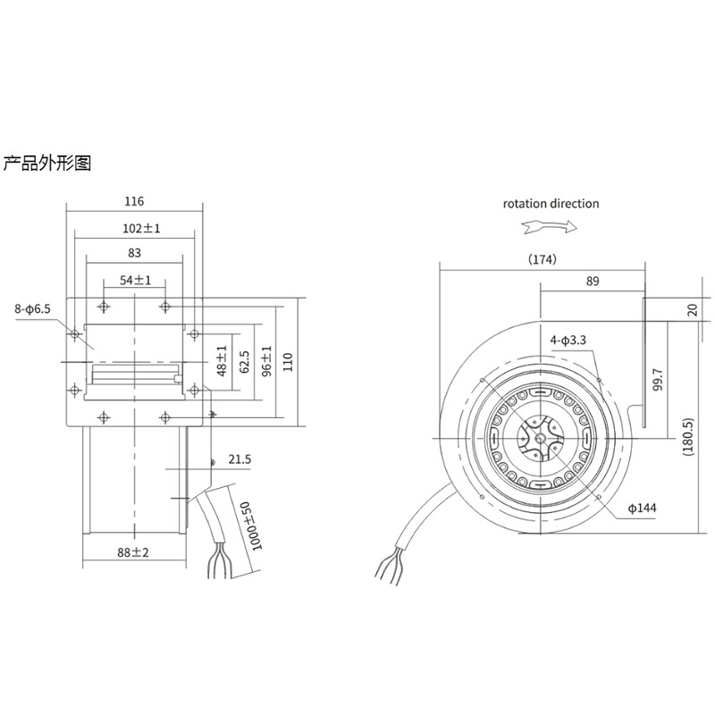 • YWF.F2S-133-073AX0A全新133系列前傾離心風機不銹鋼廚