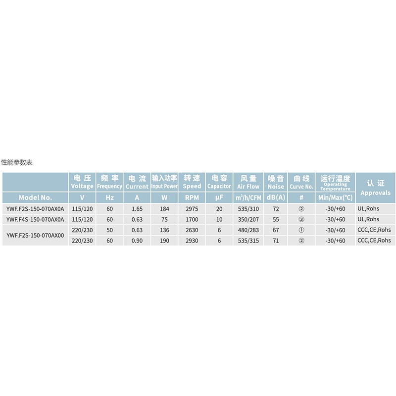 YWF.F2S-150-070AX0A全新新風系統低噪音風機無框交流