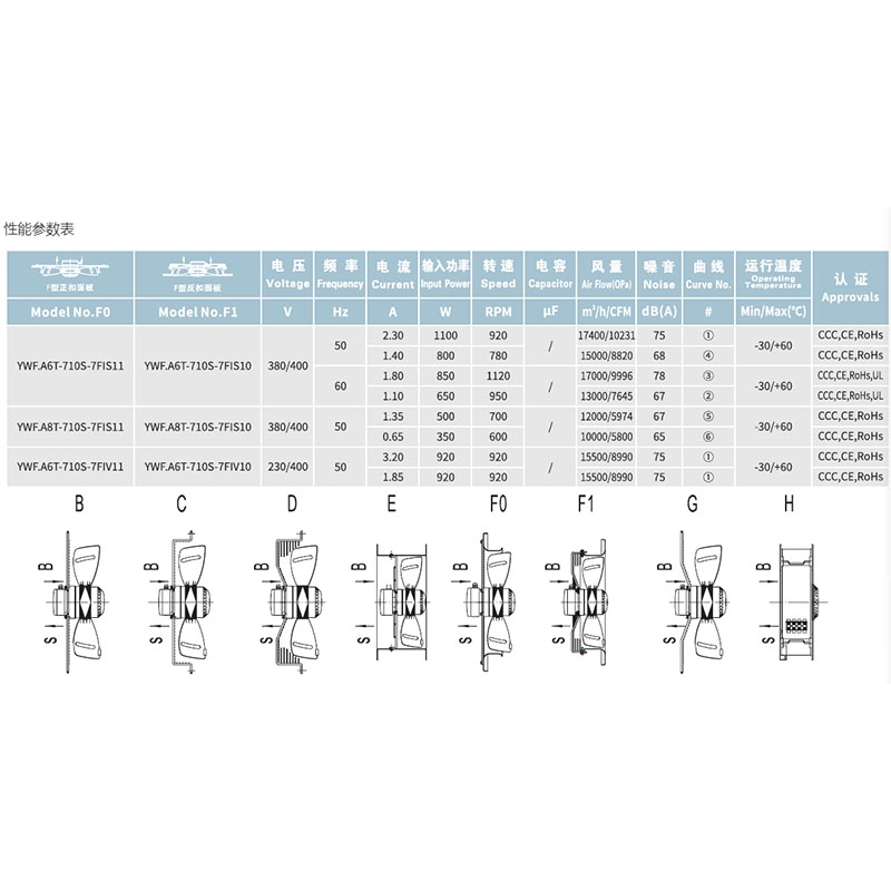 • YWF.A6T-710S-5FISP0全新三木馬爾微光外轉子軸流風扇