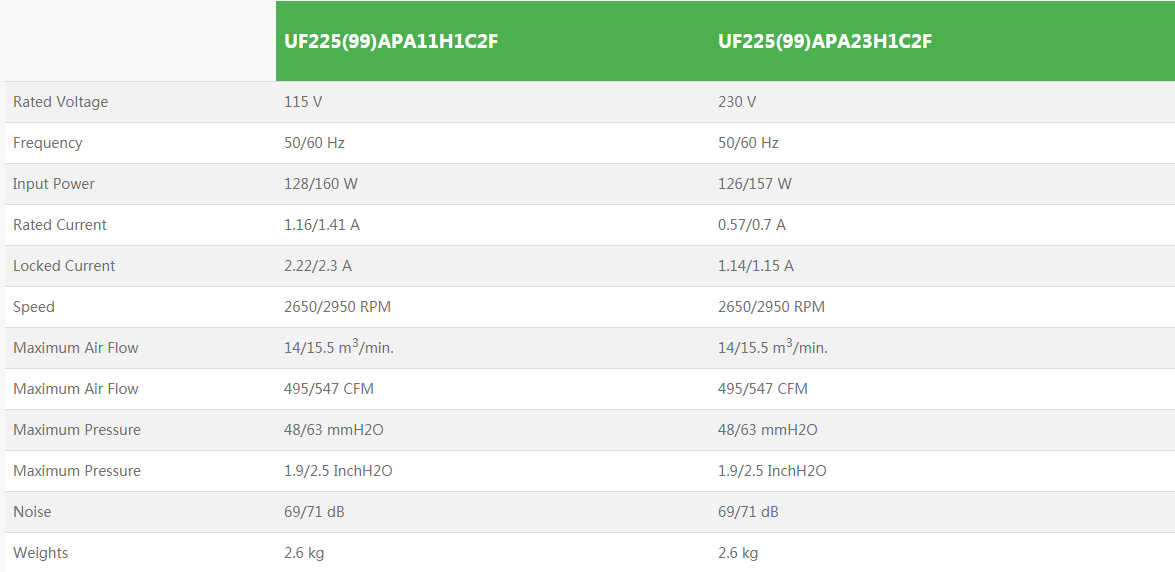 UF225(99)APA-F全新原裝臺灣進口福佑離心風機渦輪外轉子鼓風機小型靜音離心風扇